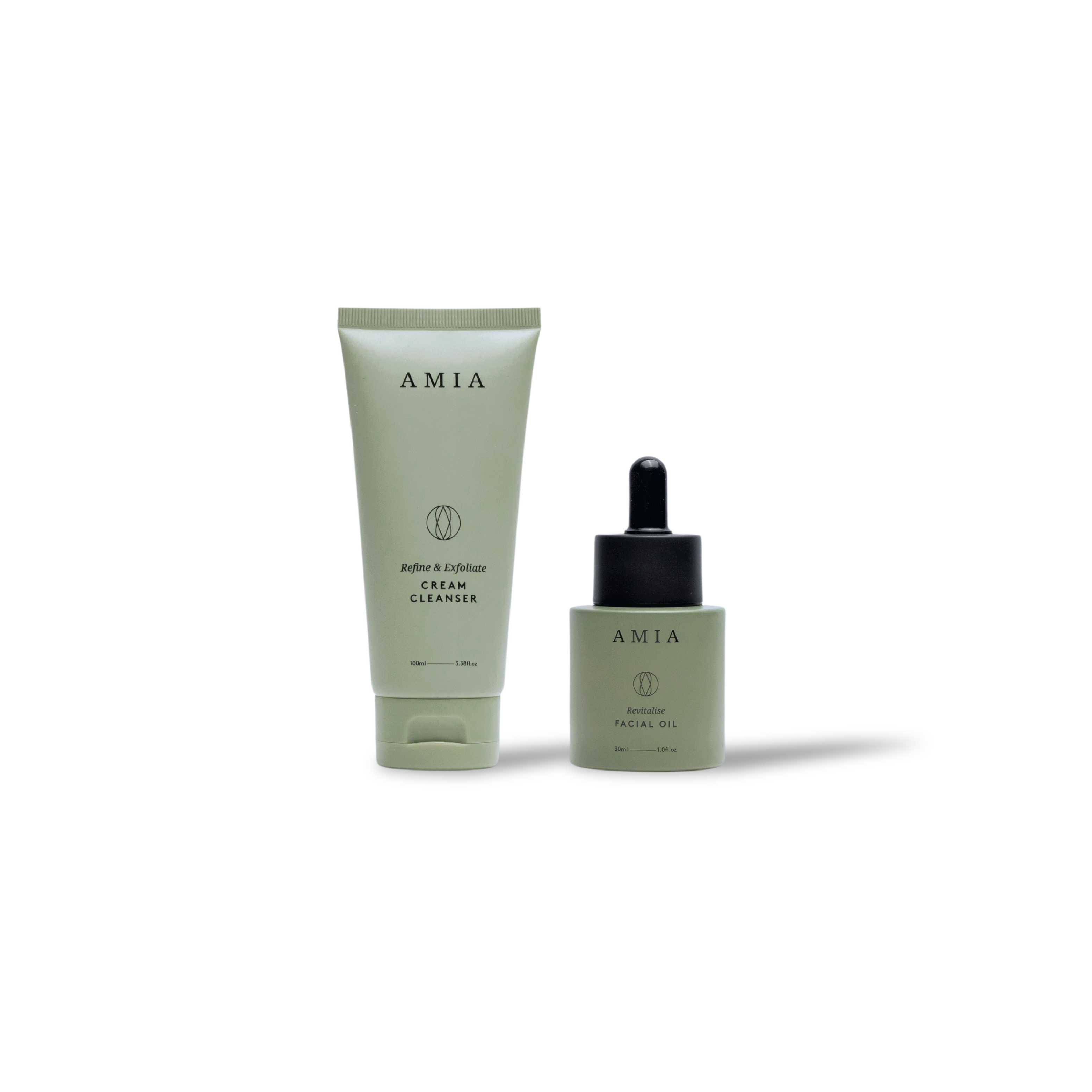 Pamper your skin with our Gentle Care Essentials duo. Begin your skincare routine with our Refine Cream Cleanser, gently eliminating impurities and maintaining skin hydration for a refreshed complexion. Follow up with our Revitalize Facial Oil, nourishing and protecting your skin with its antioxidant-rich formula. Experience the gentle care your skin deserves for a radiant, revitalized look.