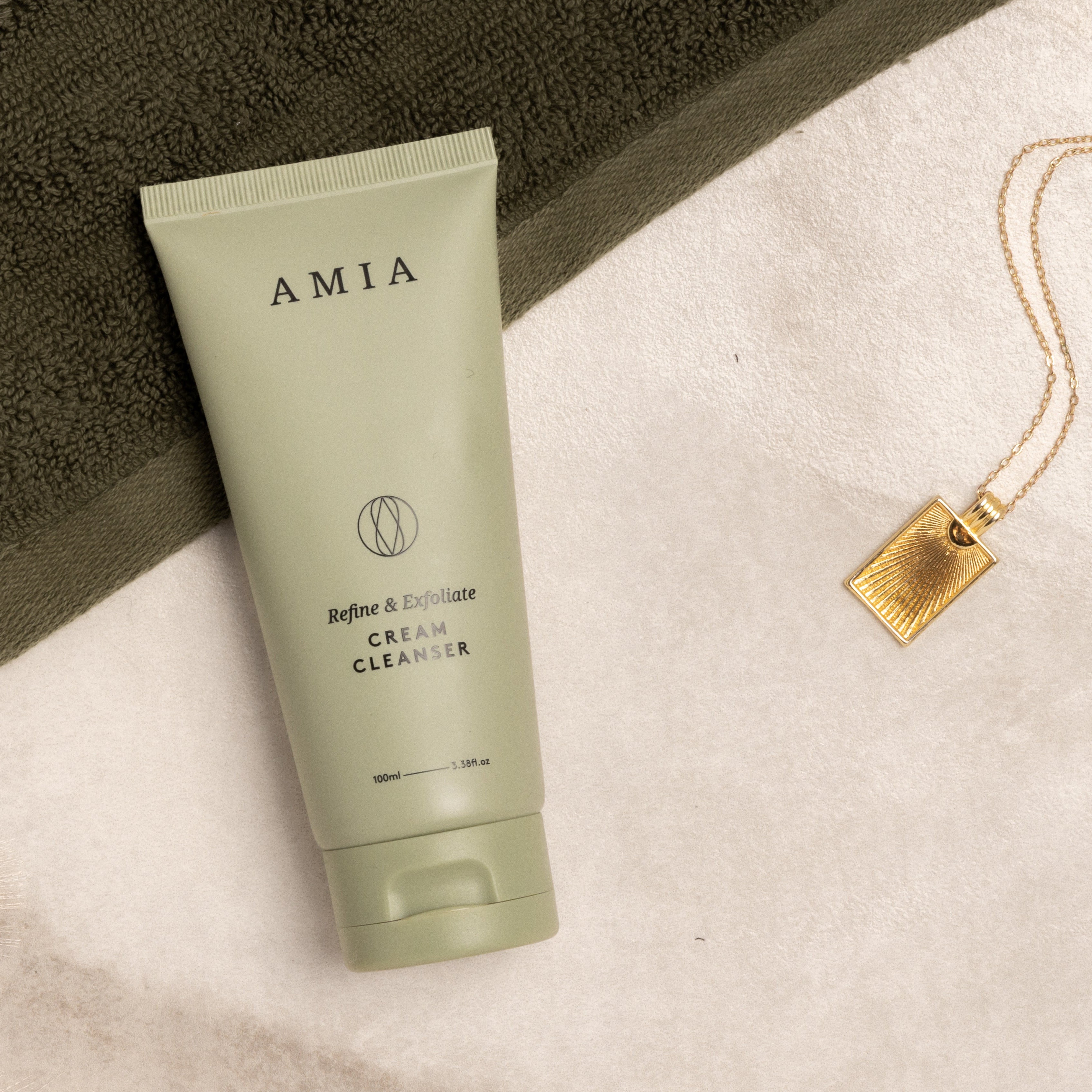 Effortlessly dissolve makeup and gently eliminate impurities with Amia’s Refine and Exfoliate Cream Cleanser. The result is a refreshed and harmonious complexion. Energized with anti-pollution benefits and a mattifying finish, this cleanser refines and exfoliates while maintaining optimal skin hydration. Its nourishing ingredients are brimming with essential fatty acids and vitamins E and F, ensuring your skin feels balanced and rejuvenated.